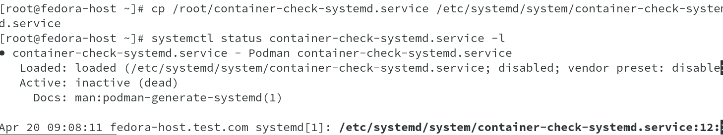 [root@fedora-host ~]# podman generate systemd -f --name check-systemd