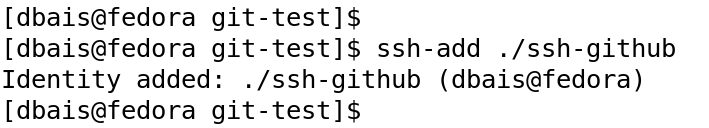 On the workstation, we need to add the key to SSH so that using the private key, we could authenticate to the Git repository. Execute command #ssh-add ./ssh-github to add the key. My SSH key is in the current working directory. You can also use the ssh-agent utility if you have protected the key with a passphrase also and don't want to enter the passphrase every time you operate.