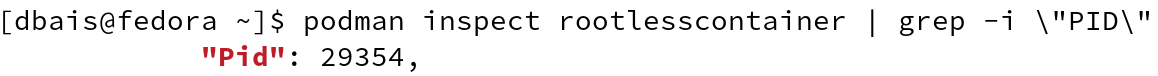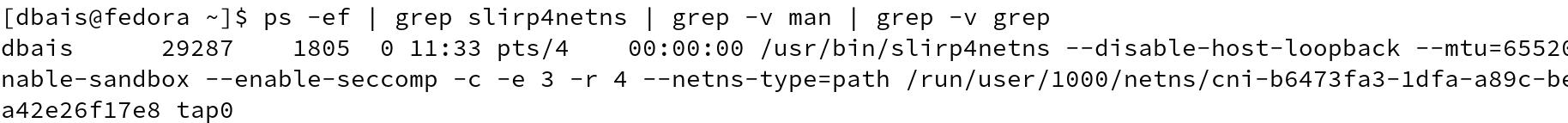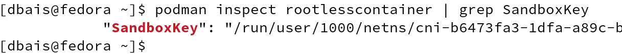 Inspecting the Podman container, we get the network sandbox key, which is also seen in the output of ps -ef command for slirp4netns process.