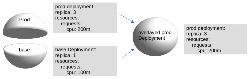 Kustomize has the concepts of bases and overlays. The base acts as the foundation of kustomization and can be referenced by other Kustomizations. It is a directory with a kustomization.yaml file which points to set of resources to be created. A base has no knowledge of the overlays that refer to it and can be used by multiple overlays. The overlay is a directory that contains a kustomization.yaml file and other information which points to other kustomization directories. In short, an overlay is unusable without a base as it creates all resources mentioned in the base with the customization suggested in the overlays. An overlay can act as a base for other overlays though.