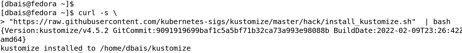 Kustomize can be installed using multiple methods, using binaries which are available for download, available at Docker images, install from source code etc. Refer to https://kubectl.docs.kubernetes.io/installation/kustomize/ for various ways of installation.